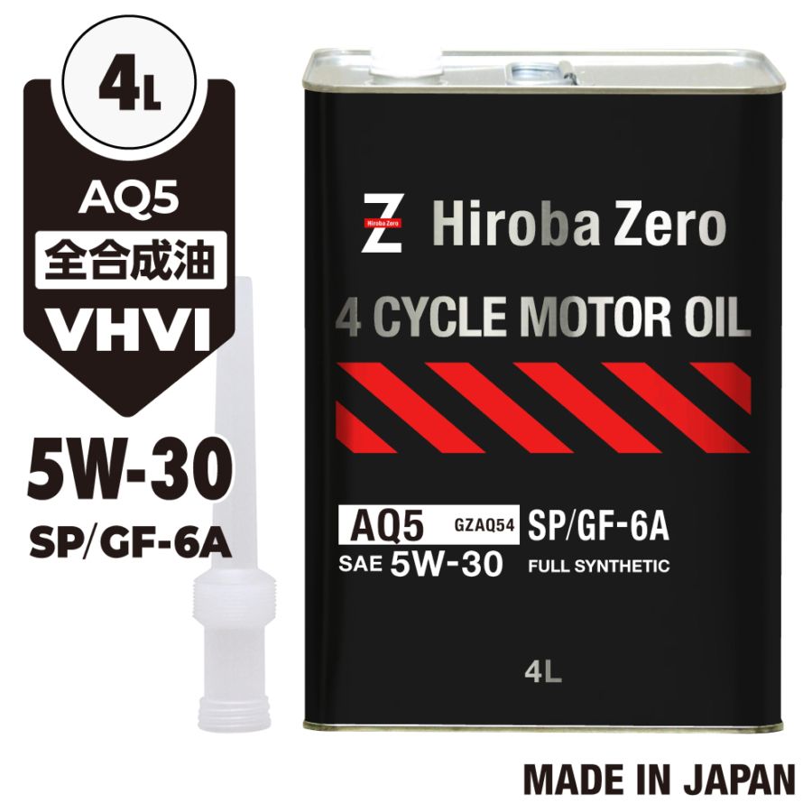 (送料無料/北海道・沖縄・離島除く) ヒロバ・ゼロ 車用 モーターオイル 4L 化学合成油/全合成油 [5W-30/SP/GF-6A] VHVI 自動車用エンジンオイル AQ5