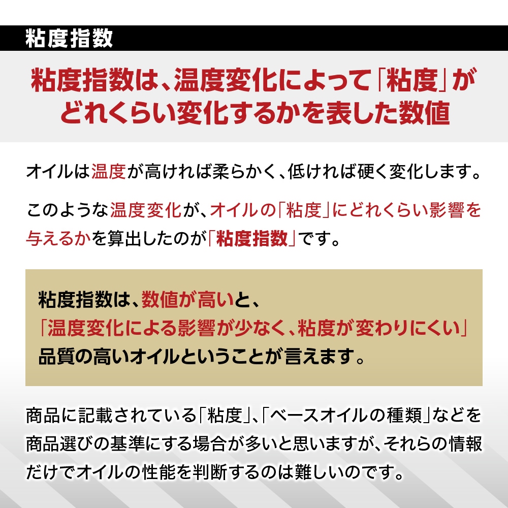 また、使用している鉱物油は、安定性に優れた良質なベースオイルを厳選。オイルシールやパッキン類への影響が少ないため、旧車や年式の古い車両にも安心してご使用いただけます。