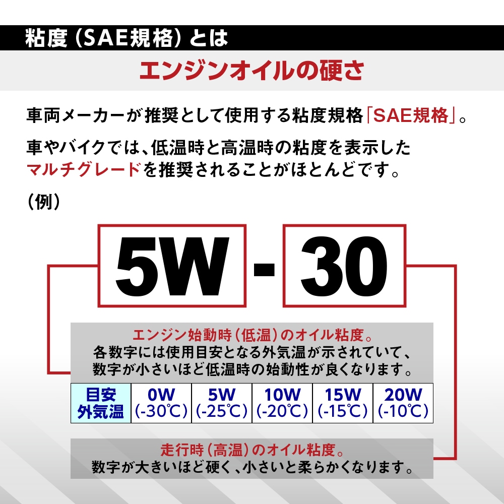 オイルを一本化できる汎用性と経済性を兼ね備えたマルチグレードオイルです。