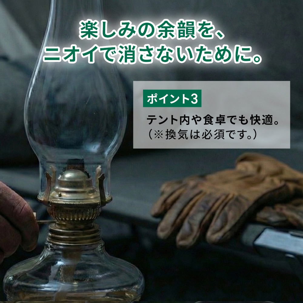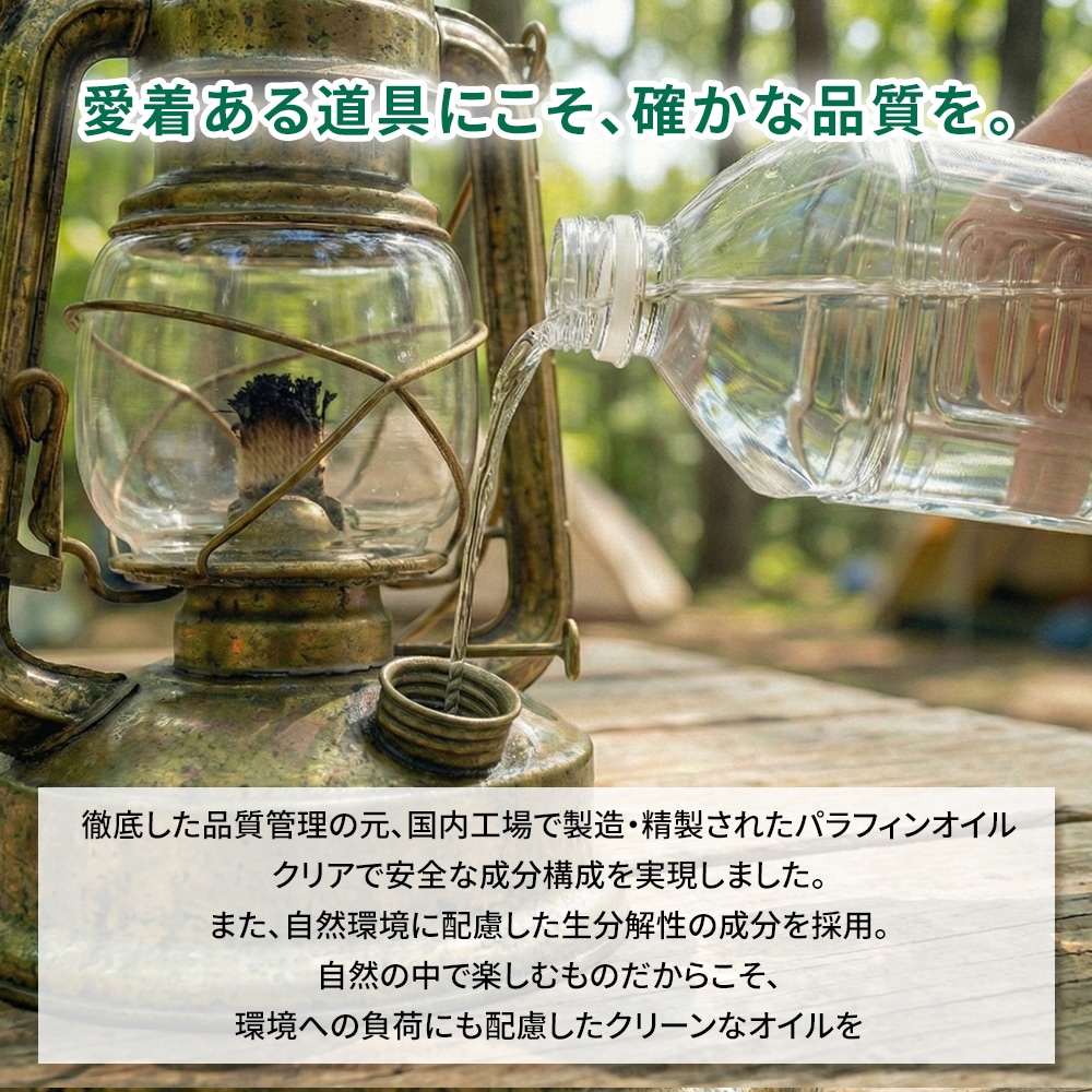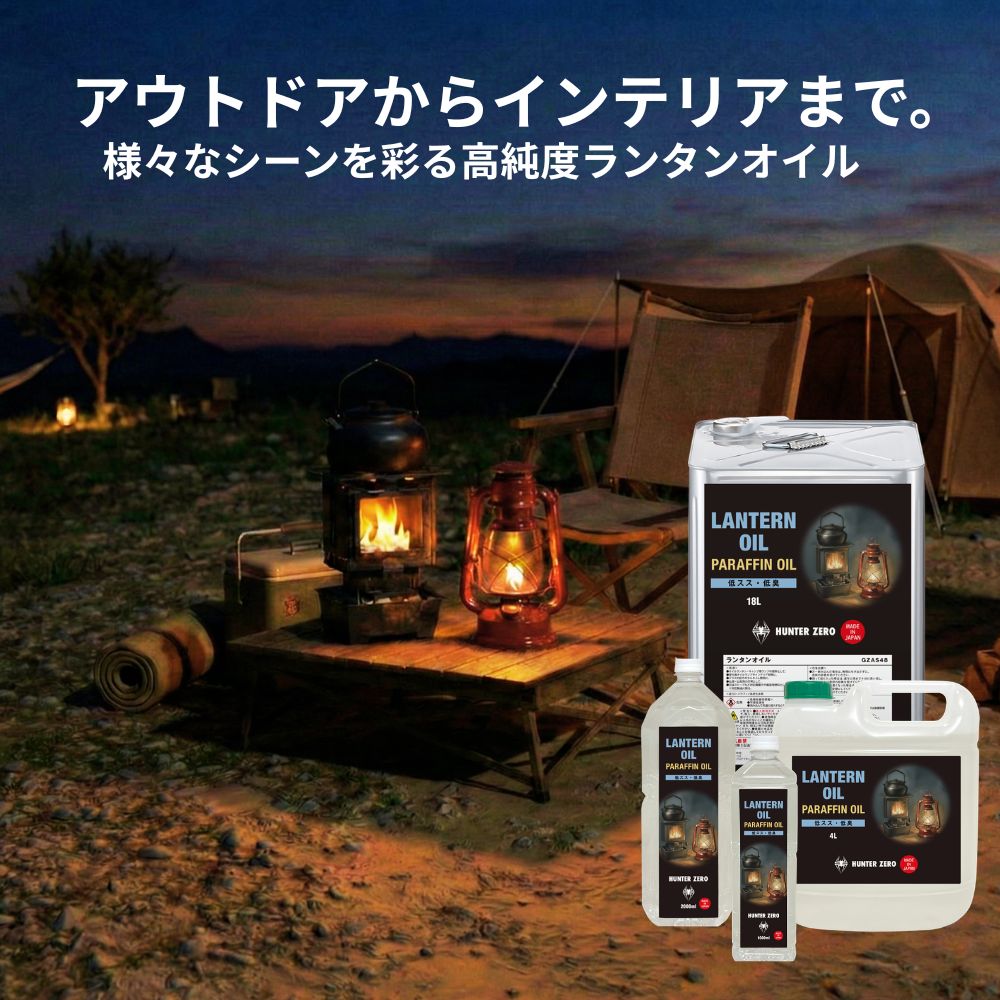 キャンプの夜を照らすランタンにも、お部屋を彩るインテリアランプにも。 この一本で、アウトドアから日常の様々なシーンで心やすらぐ灯りをお届けする、高品質なランタンオイルです。